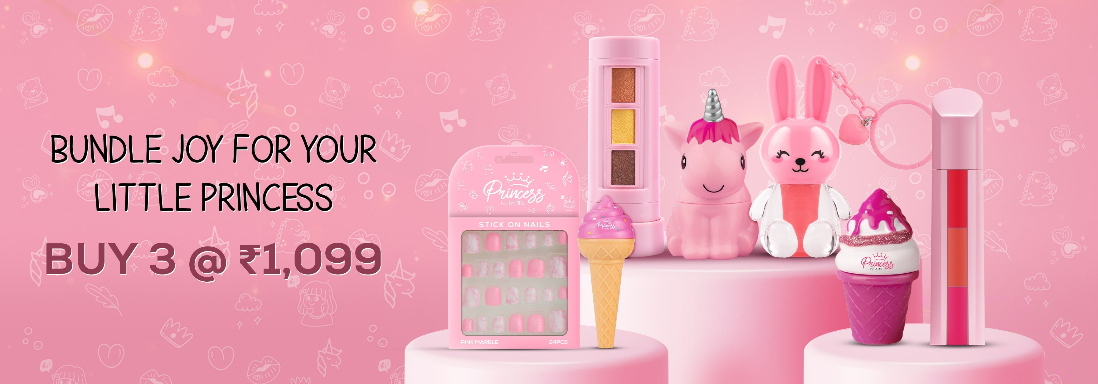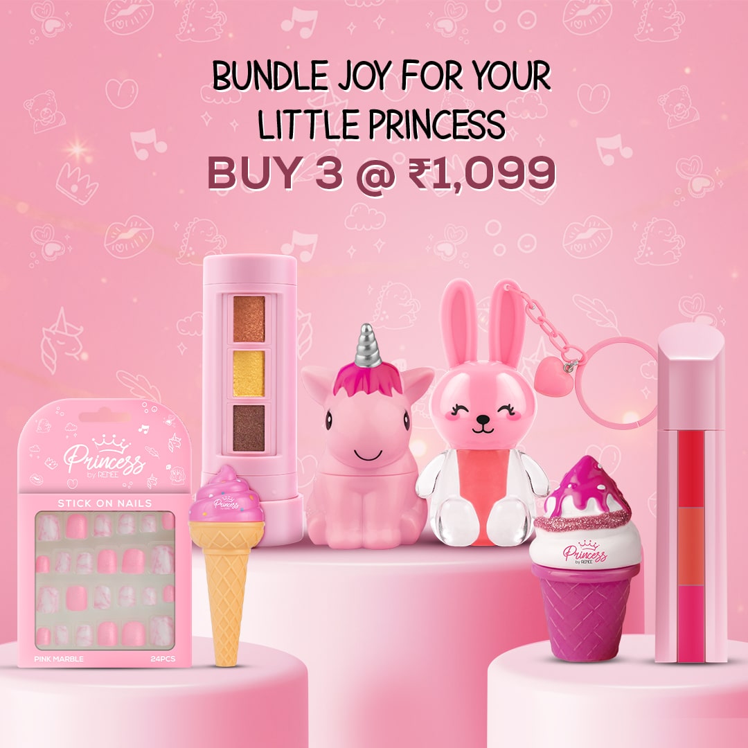 At Princess by RENÉE, we believe those first beauty moments should be filled with wonder, joy, and above all - safety. Whether it's a school picnic, a birthday bash, or a cozy playdate, we've created a delightful range of makeup and personal care products for every occasion. From playful lip balms and glossy lip shines to twinkling eyeshadows, Princess by RENÉE brings every little dream to life.