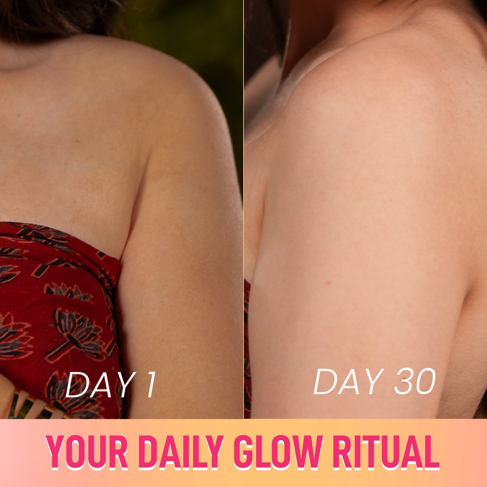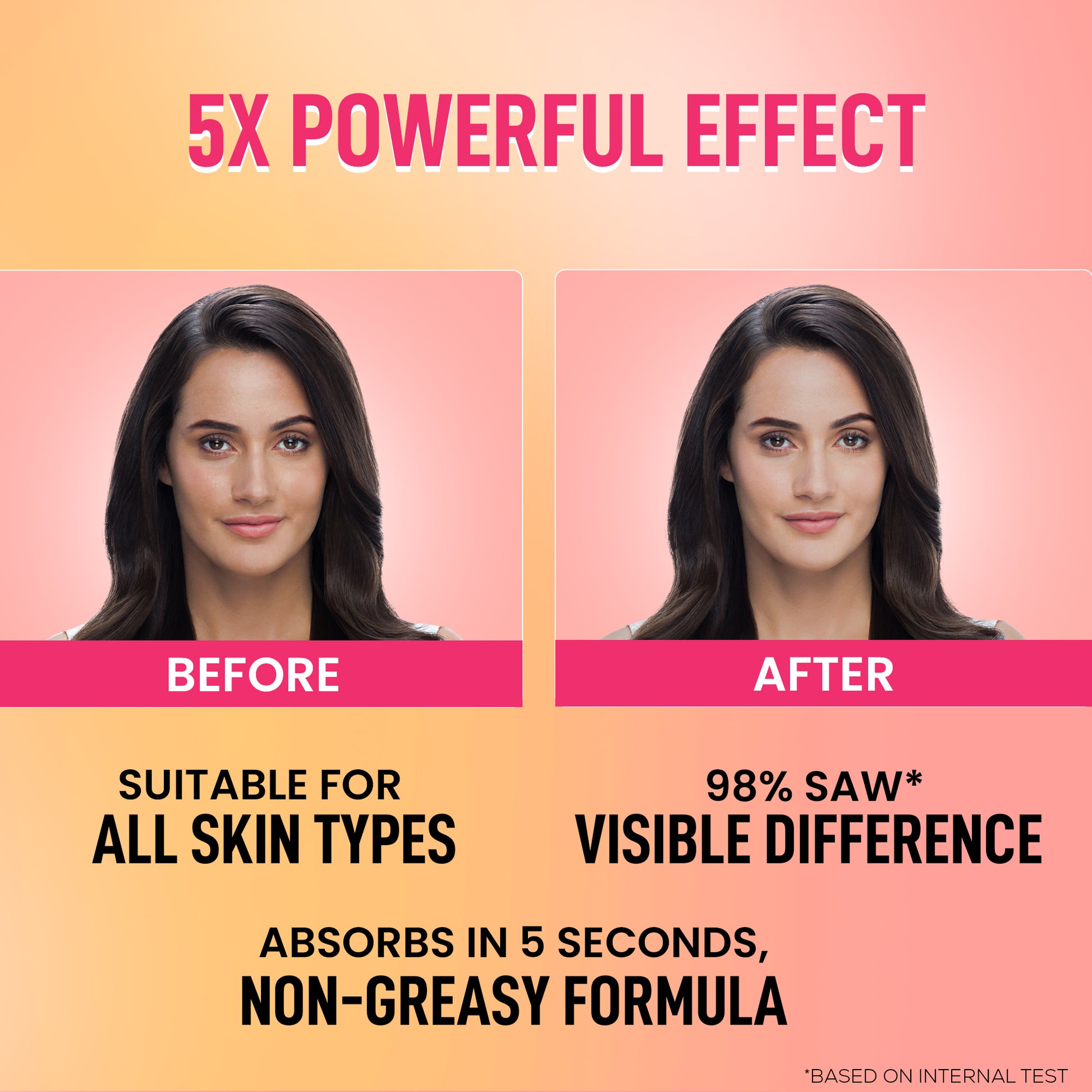 Complete your glow ritual with this ultra-light serum-infused cream. Formulated with Glutathione, Hyaluronic Acid & Niacinamide, it deeply nourishes, evens skin tone, and reduces dark spots while imparting a soft, radiant finish that lasts all day.