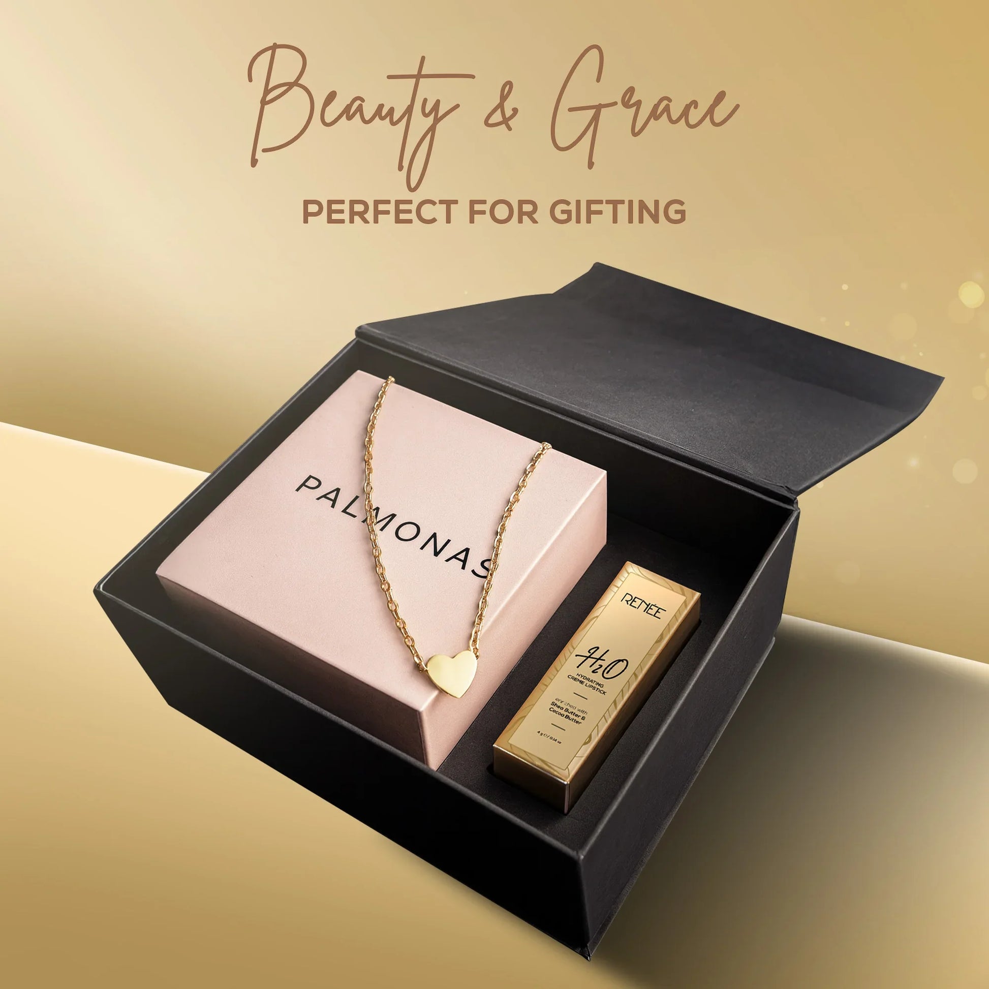 Gift your loved one the perfect pair of PALMONAS X RENEE Special Gifting Set. This beautiful combo includes PALMONAS Paris Heart Necklace and RENEE H2O Hydrating Creme Lipstick in the shade Mauve Lagoon.