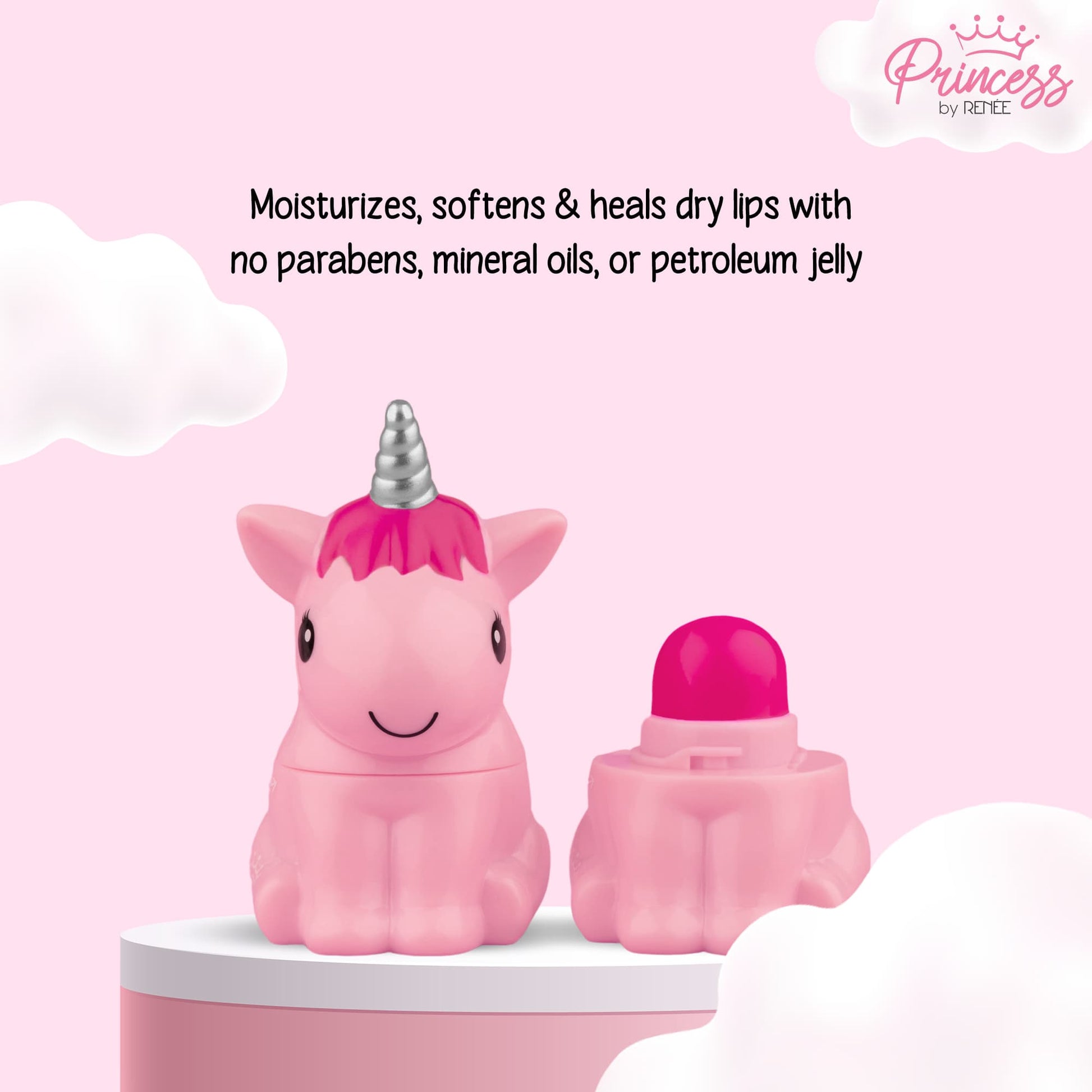 Princess by RENEE Snowball Lip Balm: Uncap & start applying from the center of the lips moving outwards all along, apply liberally whenever lips feel dry.