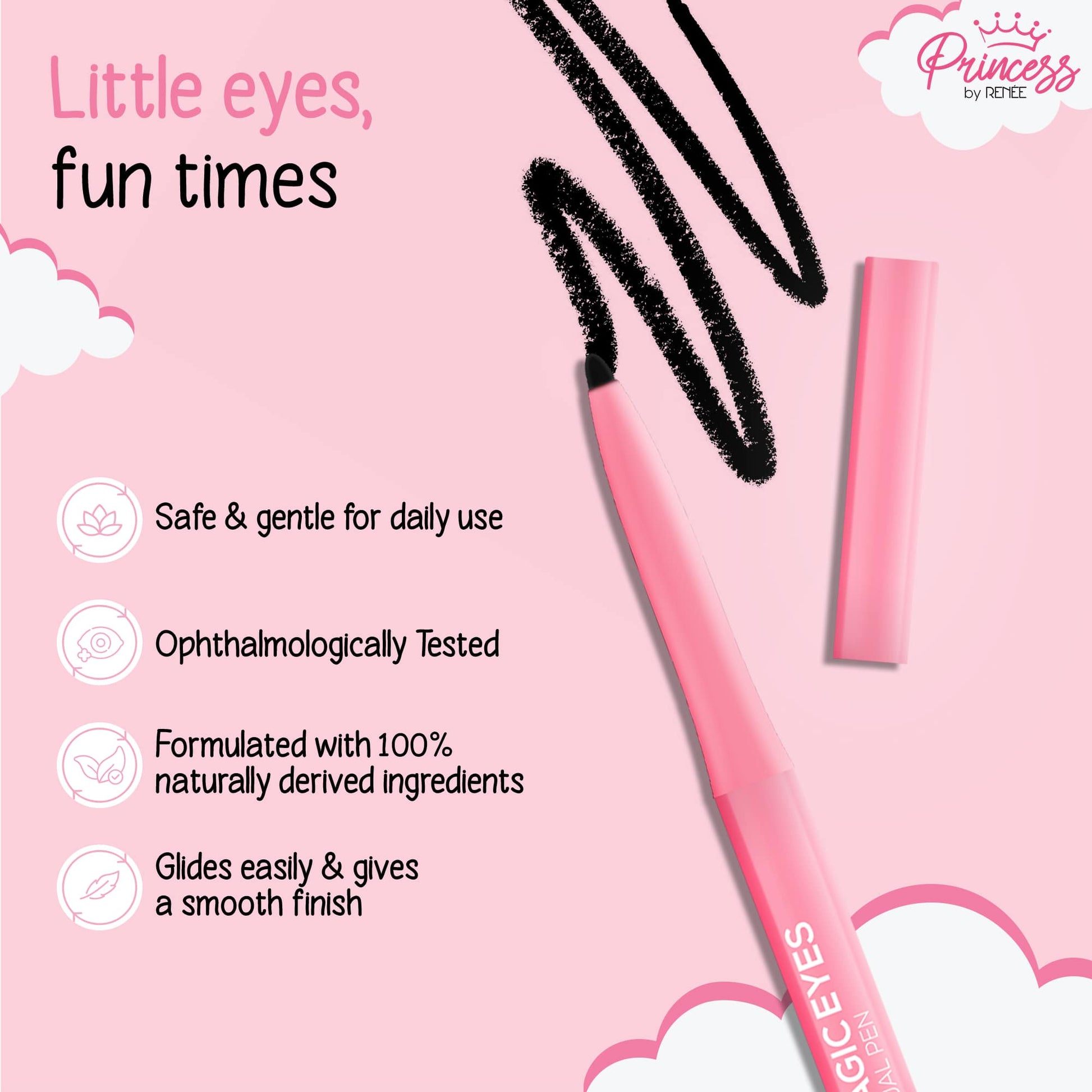 Princess by RENEE Magic Eyes Kajal Pen For Preteens, Safe & 100% Naturally Derived Ingredients, Ophthalmologically Tested