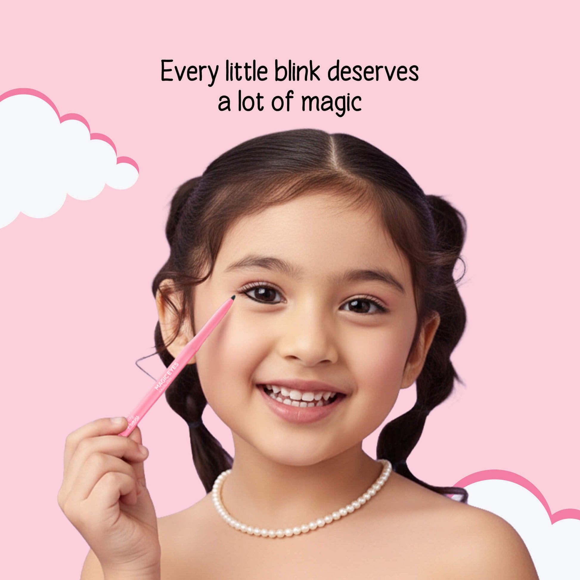 Let little eyes twinkle with joy using Princess by RENEE Magic Eyes Kajal Pen. Formulated with carefully chosen parent-approved and safe ingredients, Magic Eyes Kajal Pen ensures a seamless and sheltered beauty experience. Infused with 100% naturally derived ingredients-Almond oil, Shea butter, Kokum butter, and Vitamin E, this kajal glides easily and keeps the soft eye skin nourished. This ophthalmologically tested formula delivers a black pay-off gentle enough for her delicate eyes. With Magic Eyes by Princess by RENEE, every princess can play and explore safely and worry-free.