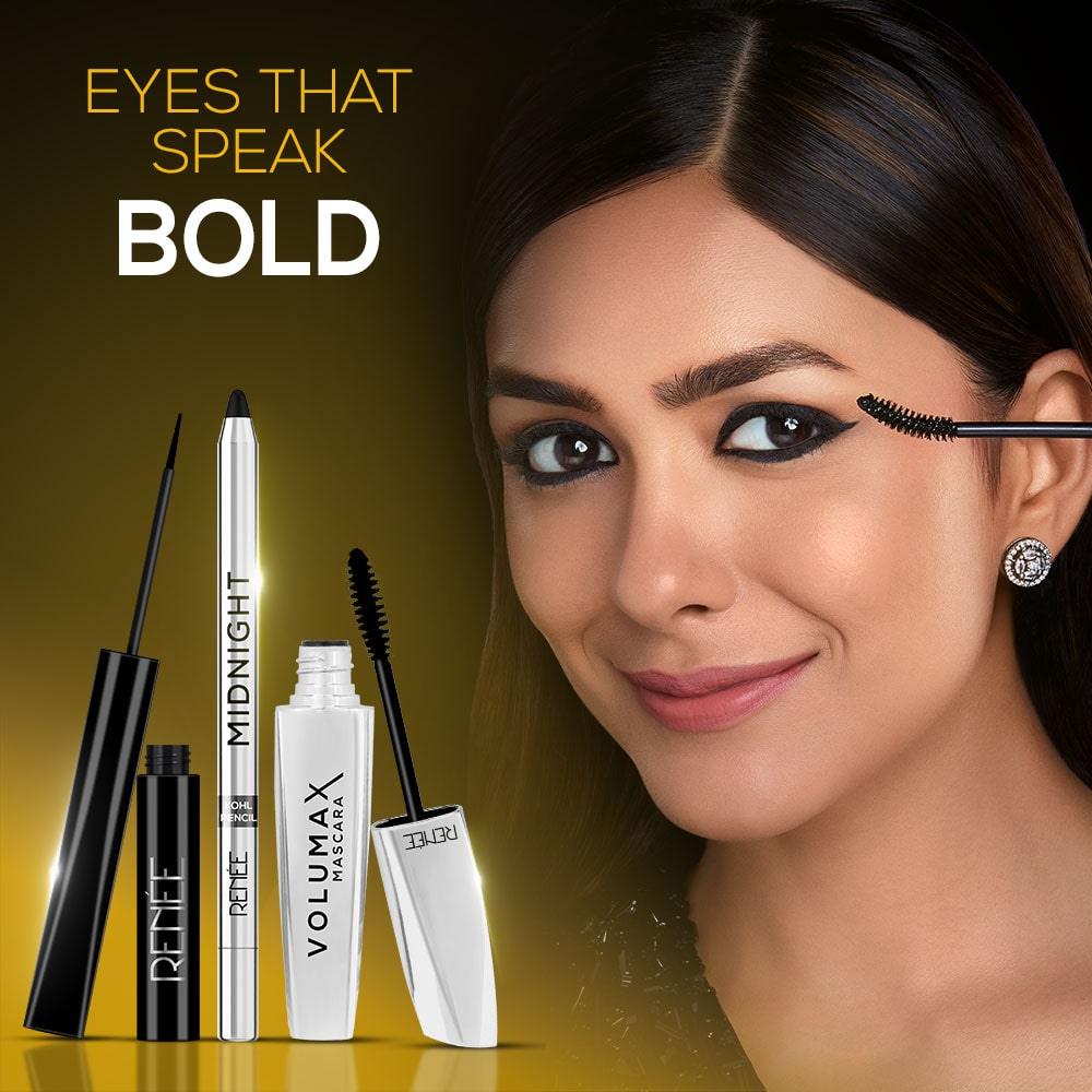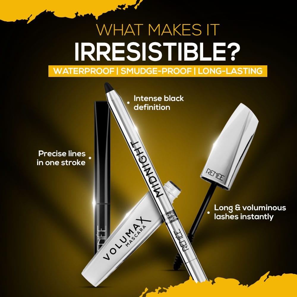 Get ready to unleash your eyeconic glamour with the RENEE Eye Glam Combo. Featuring the sultry Midnight Kohl, precise Extreme Stay Eyeliner, and voluminous Volumax mascara, this trio is your key to mesmerizing eye makeup that withstands it all - waterproof, smudge-proof, and super long-lasting.