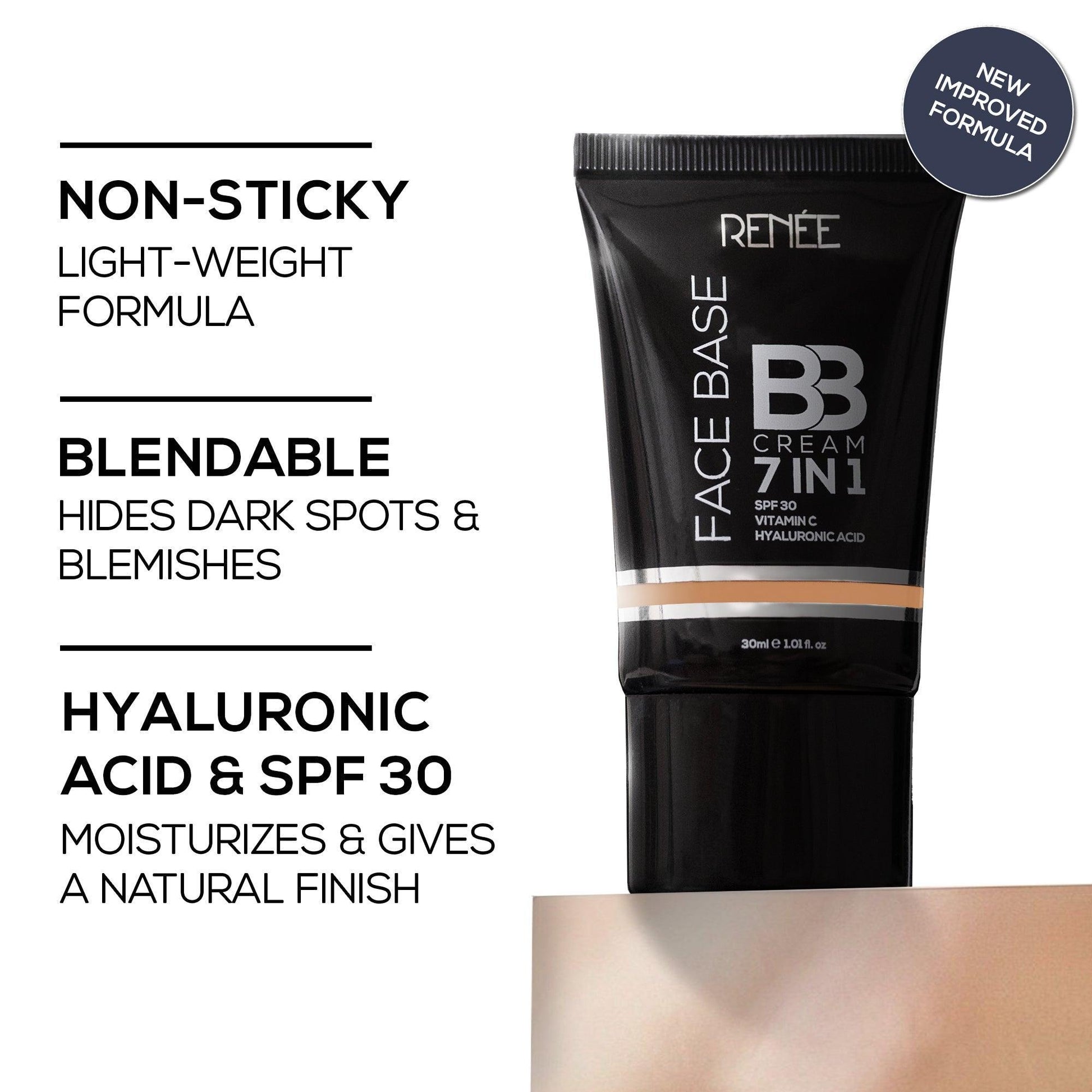 RENEE Face Base 7 in 1 BB Cream with SPF 30, Hyaluronic Acid & Vitamin C, 30 ml
