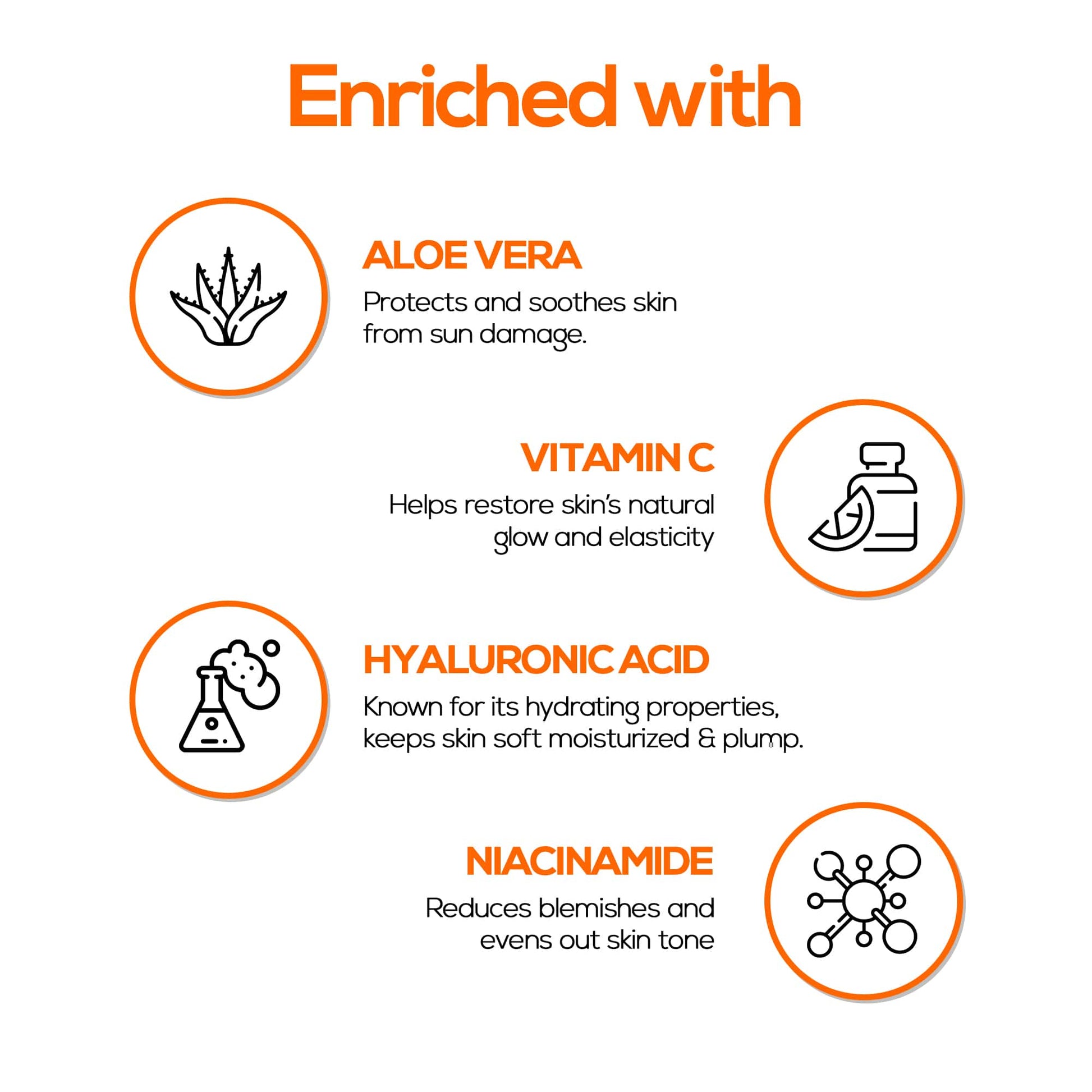 Key Ingredients : Aloe Vera , VITAMIN C , HYALURONIC ACID , NIACINAMIDE