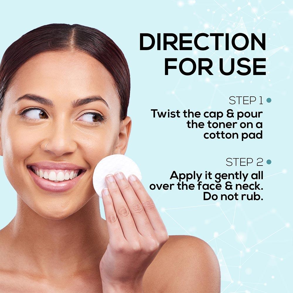 Twist the cap & pour the toner on a cotton pad , Appy it gently all over the face & neck. Do not rub.