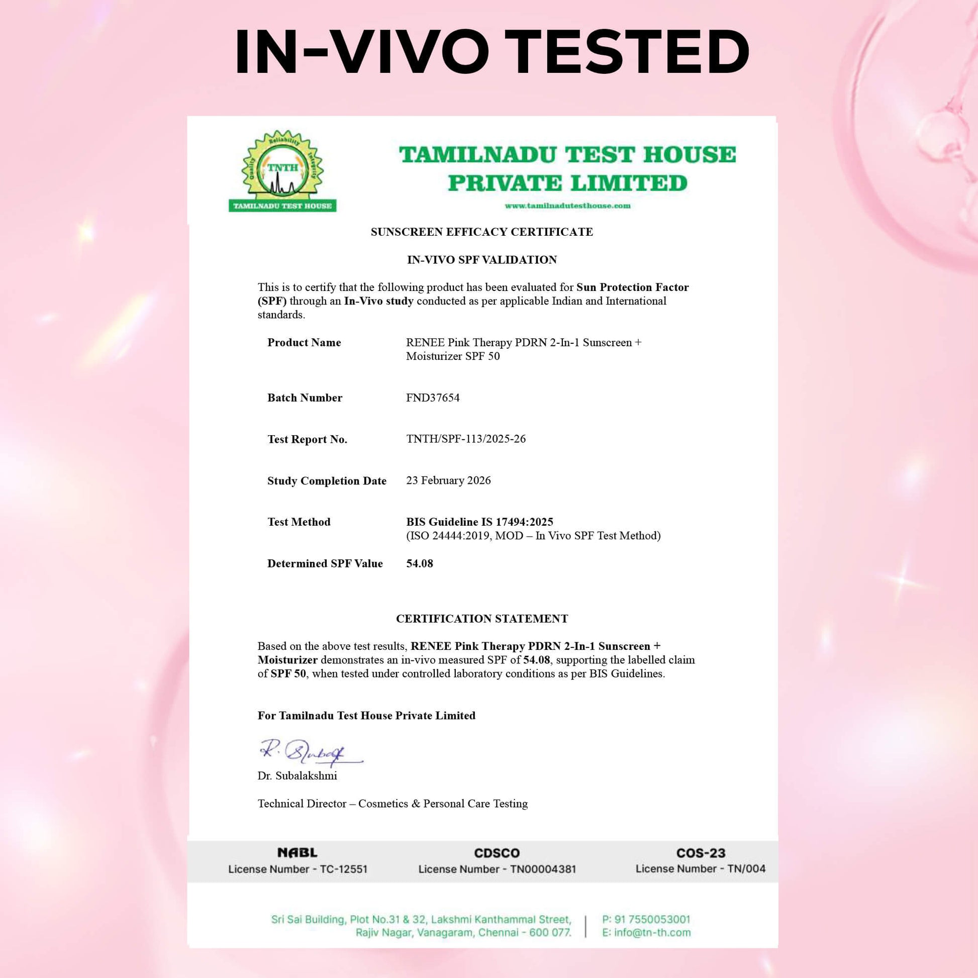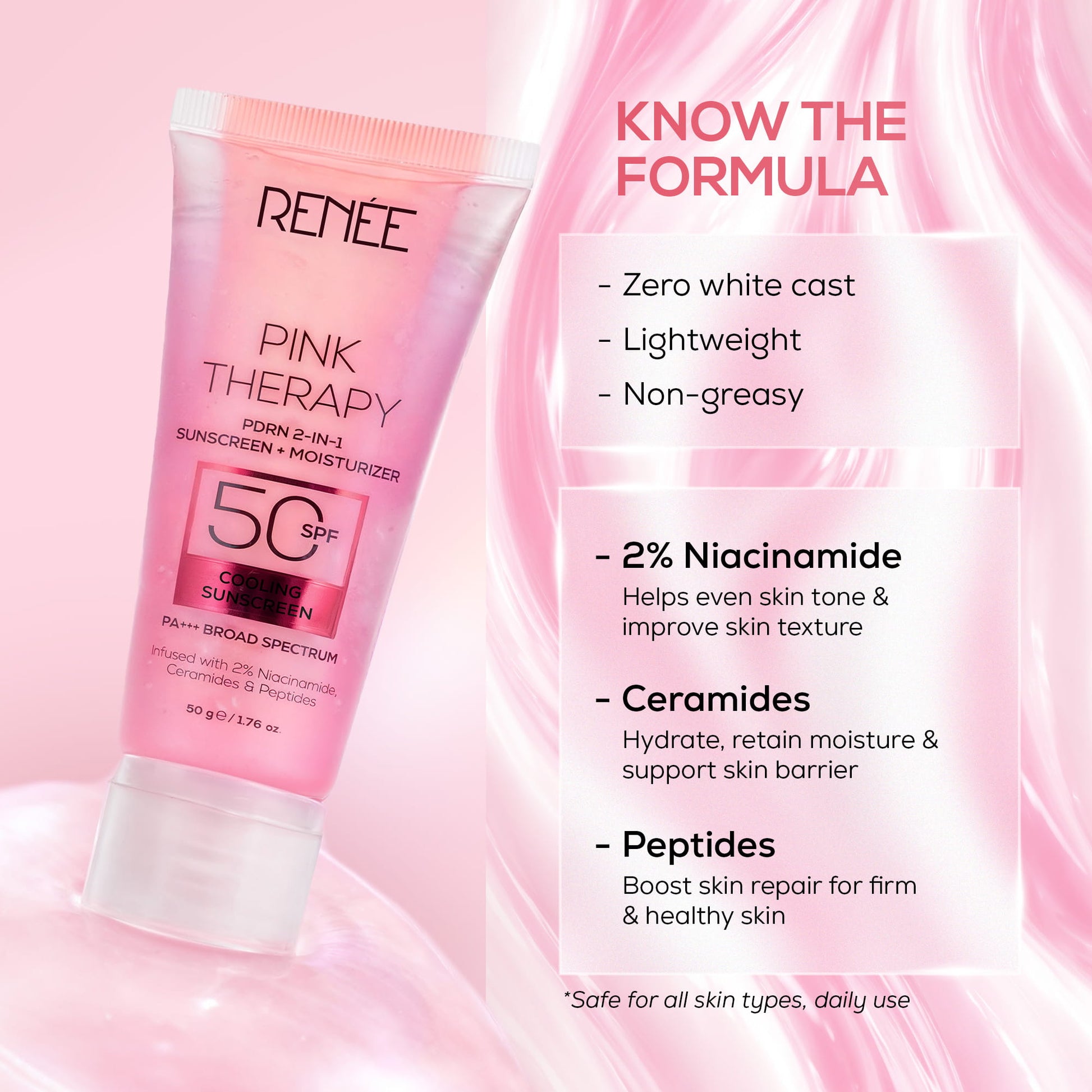 RENEE Pink Therapy PDRN 2-In-1 Sunscreen + Moisturizer | In-Vivo Tested SPF 50 PA+++ With 2% Niacinamide, Ceramides & Peptides, 50g