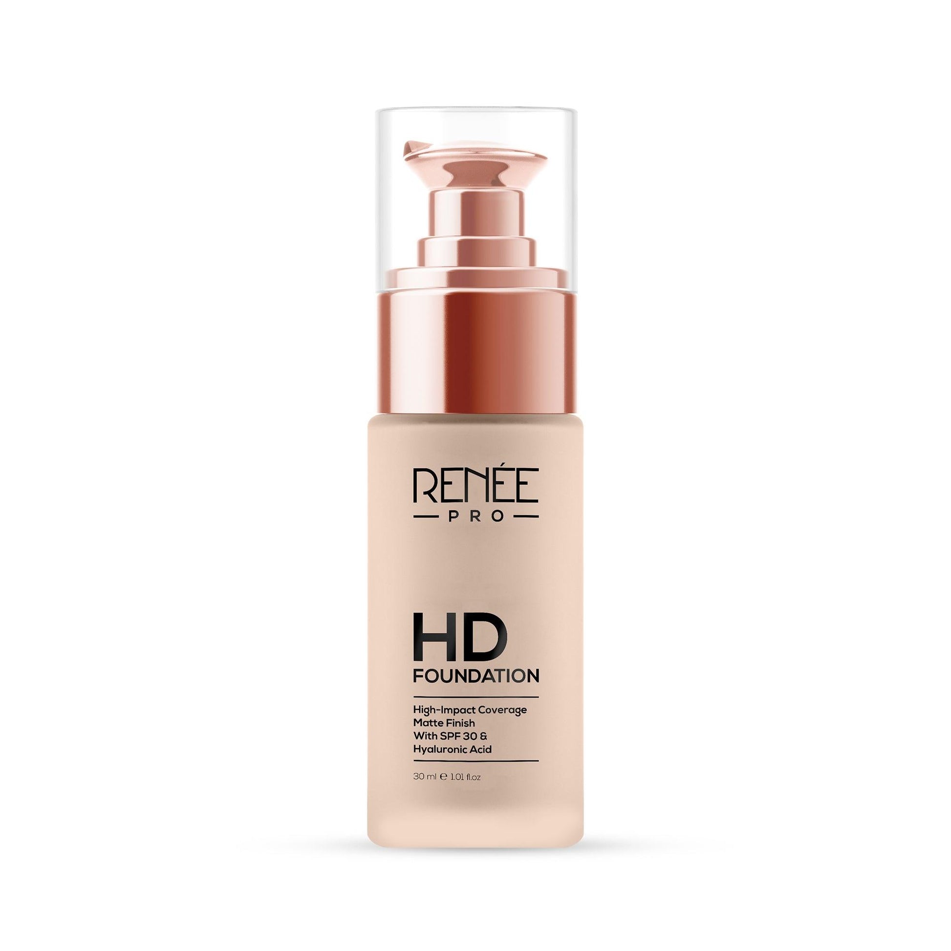 Experience the transformative power of RENEE Pro HD Foundation with SPF 30, a high-performance foundation that lets you unveil your most radiant look with a matte finish. Get flawless base effortlessly with this luxurious foundation that blends into the skin, delivering a natural-looking, matte finish that lasts for a long time and doesn't crack or crease. Infused with the goodness of Aloe Vera, Coffee, Chamomile, and Vitamin E, this airy-light foundation nourishes and protects your skin while providing buildable coverage to conceal imperfections and even out skin tone.