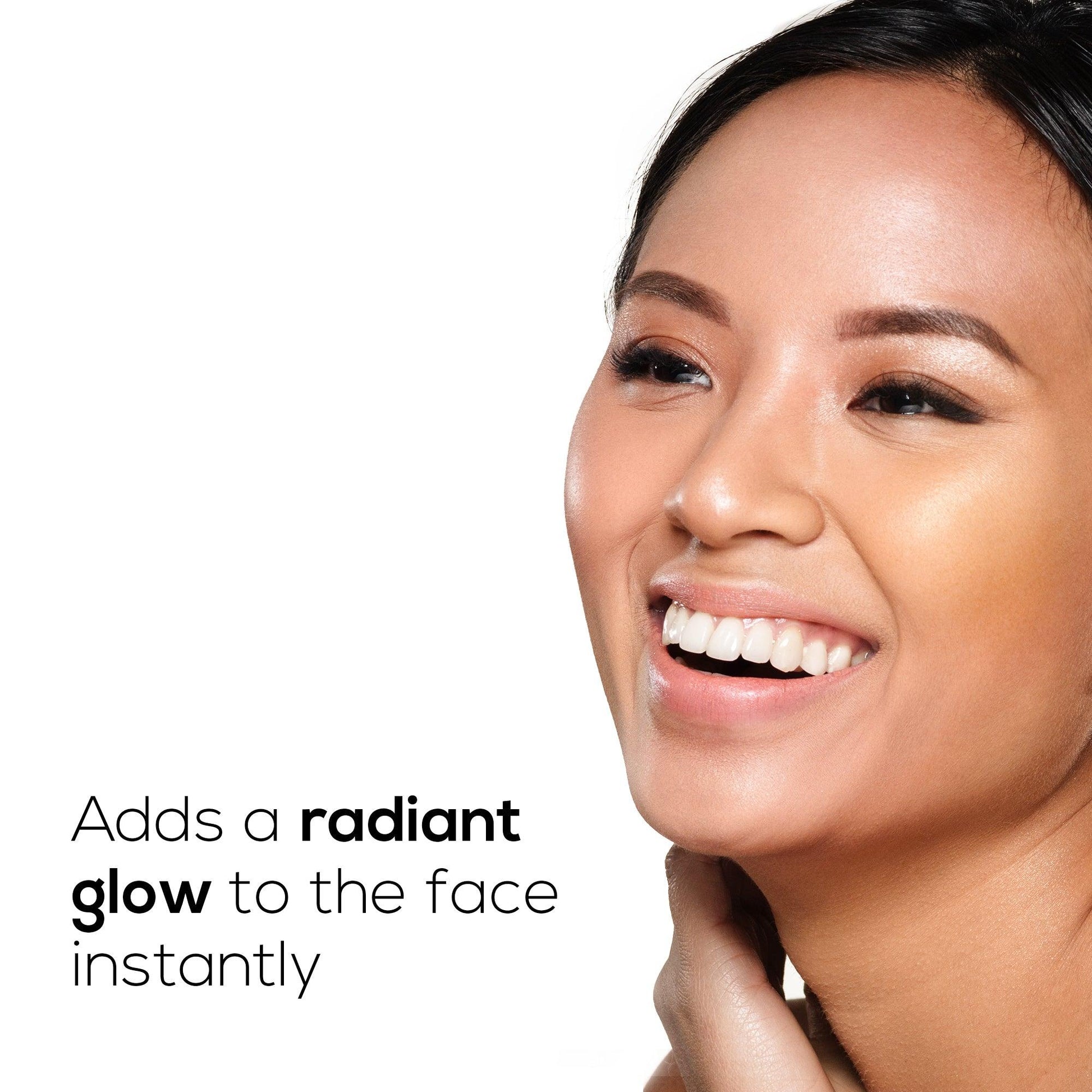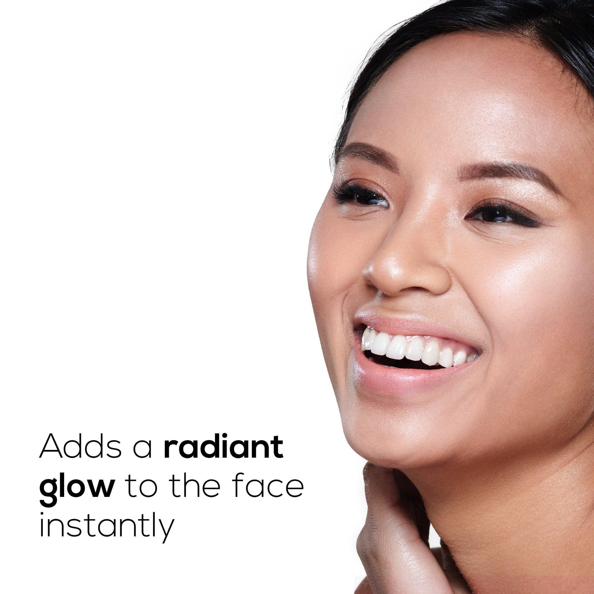 - Evens out the skin with shimmery finish