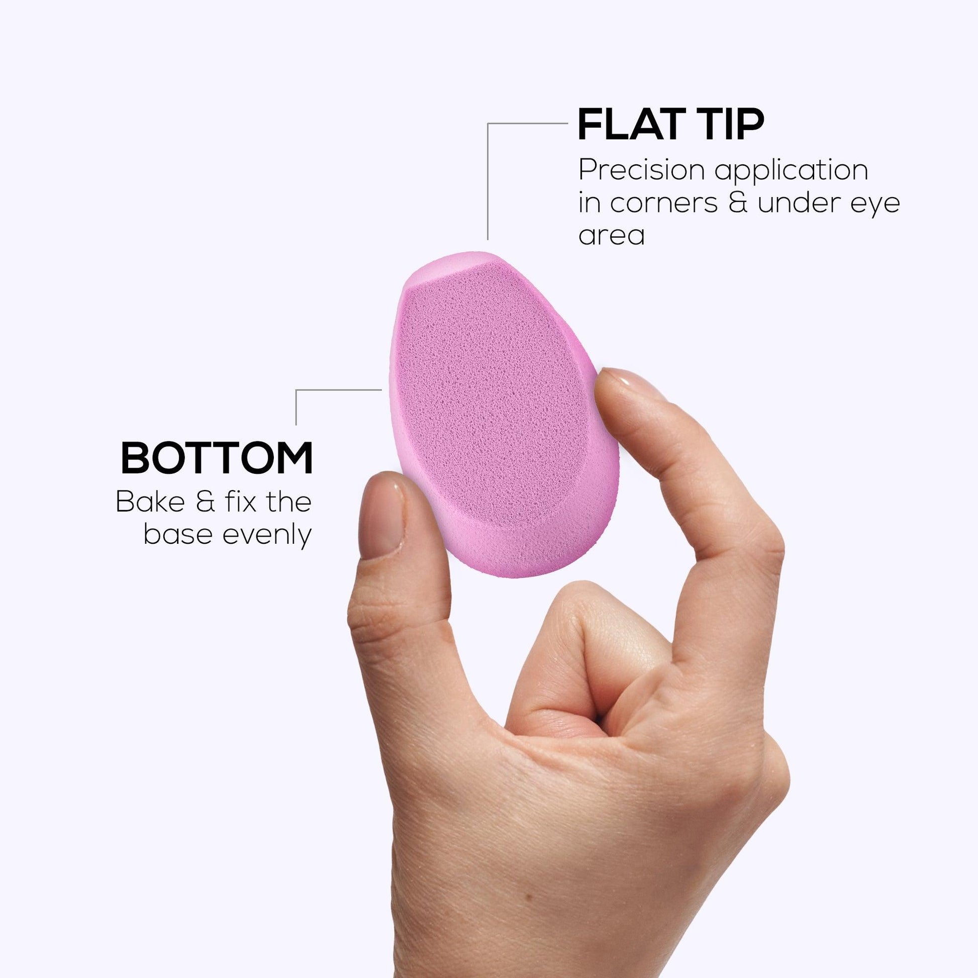 - Dry product application: Dip into the product & dab gently to bake. Use angled edges to reach difficult areas