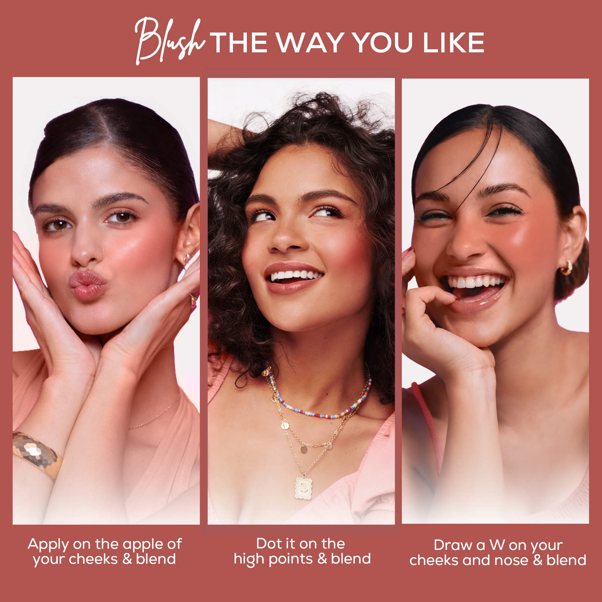 Dab brush on pan & dust off excess product. Apply directly to the apple of your cheeks and blend gently. Repeat to increase intensity.